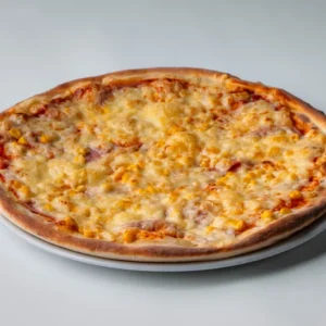 paradicsomos alap, sonka, kukorica, ananász, trappista sajt Kérd pizzádat orosz rulettben! (az egyik szelet nagyon csípős, de nem tudhatod melyik)