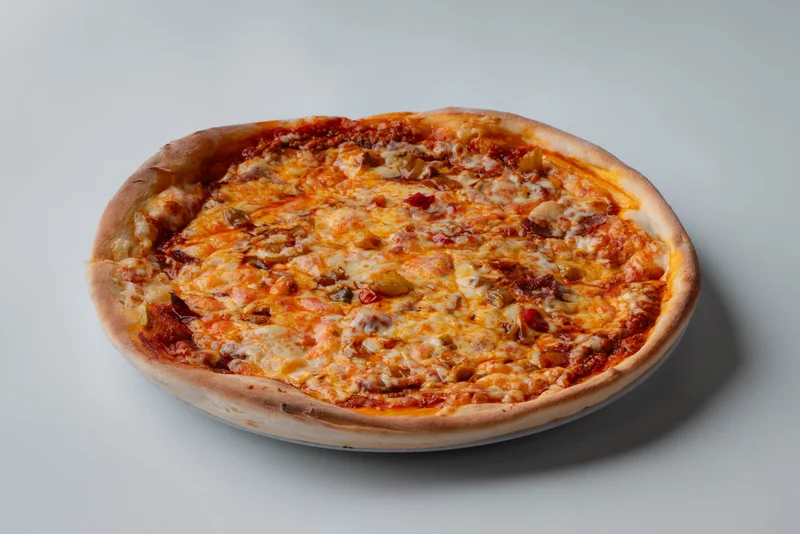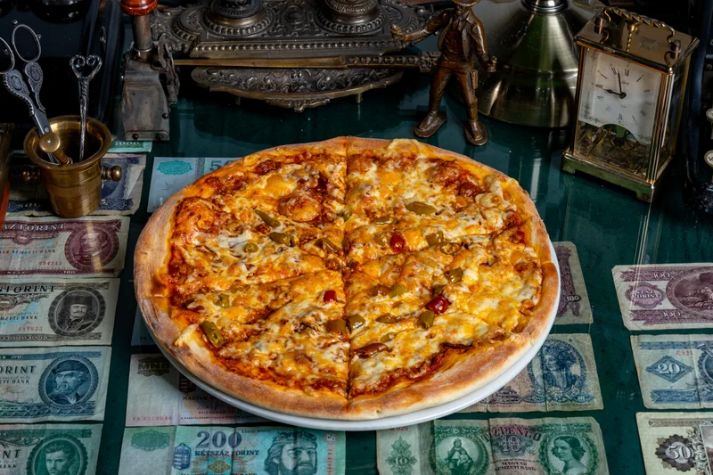 paradicsomos alap, bolognai ragu, pikáns házi kolbász, trappista sajt, pepperóni Kérd pizzádat orosz rulettben! (az egyik szelet nagyon csípős, de nem tudhatod melyik)