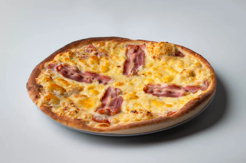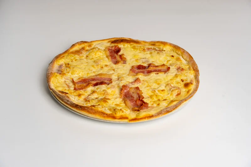 fűszeres tejfölös alap, sonka, fokhagyma, trappista sajt, bacon Kérd pizzádat orosz rulettben! (az egyik szelet nagyon csípős, de nem tudhatod melyik)